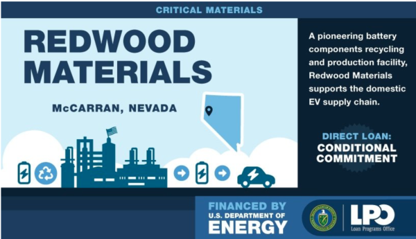 當地時間2月9日,美國能源部貸款項目辦公室(LPO)宣佈,將向美國電池回收企業紅木材料公司(Redwood Materials)提供一筆有條件的20億美元低息貸款,幫助其在內華達州建造一座電池材料回收和再製造綜合工廠,工廠總投資約35億美元。