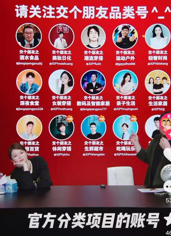 交個朋友目前也是「藝人+素人」雙輪驅動。一方面,依託羅永浩個人IP,獨家簽約了70多個素人主播,被分配在交個朋友矩陣號但當「主理人」的角色。