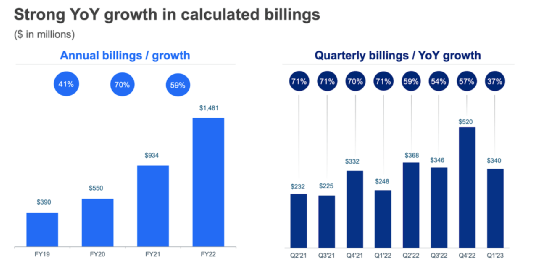 繼去年收入增長62%之后,Zscaler繼續快速增長,最近一個季度的收入增長了54%。儘管可比性很強,宏觀背景也很困難,但該公司仍能保持快速增長。