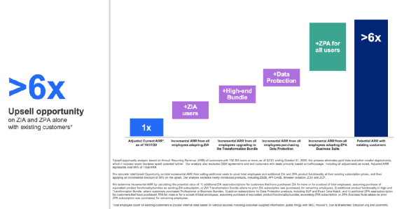 Zscaler估計,僅通過對現有客户的追加銷售就可以將收入增加6倍。在電話會議上,管理層指出,新銷售收入和追加銷售收入之間的比例在本季度約為五五開。