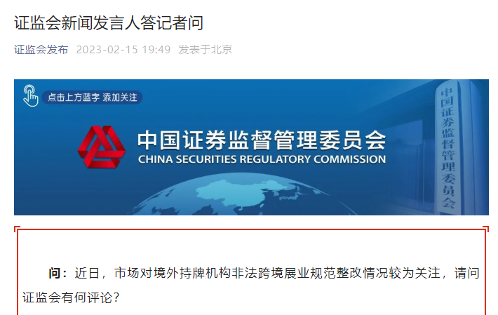 問:近日,市場對境外持牌機構非法跨境展業規範整改情況較為關注,請問證監會有何評論?