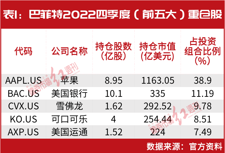 整體來看,蘋果仍是投資組合中的第一大重倉股,持倉市值為1163.05億美元,佔全部投資組合比例為38.9%(見表1)。