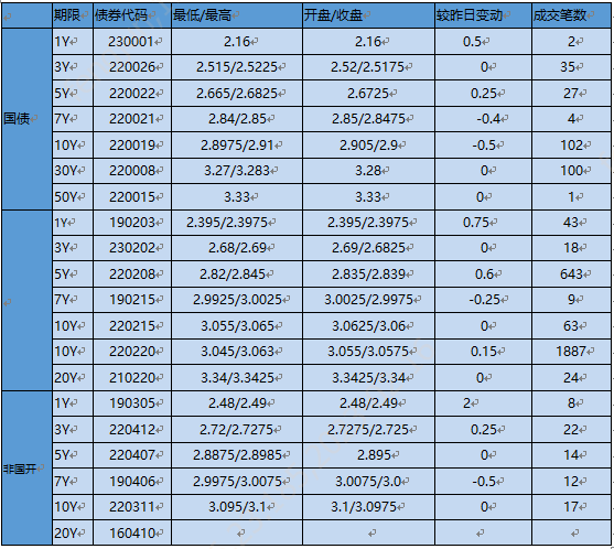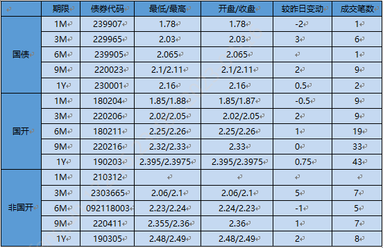 今天短利率交投清淡,資金面持續收緊,收益率小幅上行。