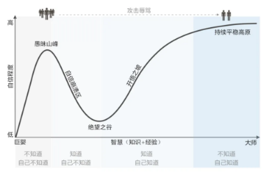 每一個新的概念出來,總會經歷一些類似的階段,鄧寧-克魯格效應可以很好的解釋這些不同的階段。