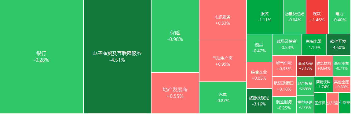 互聯網股中,京東集團-SW(09618.HK)、百度集團-SW(09888.HK)、騰訊控股(00700.HK)、分別下跌8.53%、4.76%、4.03%。