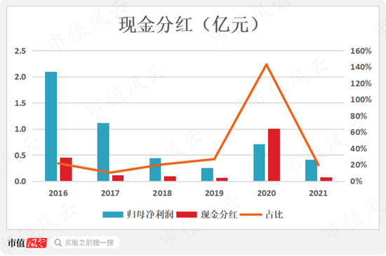 公司分紅率歷年維持在20%左右,但2020年較為異常,現金分紅佔歸母淨利潤比例達到143%。