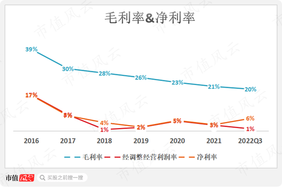 在毛利率持續走低的情況下,公司經調整經營利潤率也同步下滑,2022年前三季度該值僅為1%,這收益還不如買理財!