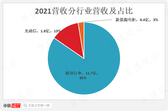 按營收分類來看,通訊行業是公司業績的主要來源,2021年營收11.7億,佔比達85%。