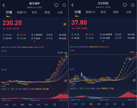 沾上ChatGPT概念的相關個股悉數大漲,如海天瑞聲(688787.SH),從年后至2月17日,股價已翻兩倍;漢王科技(002362.SZ)股價也已翻倍……