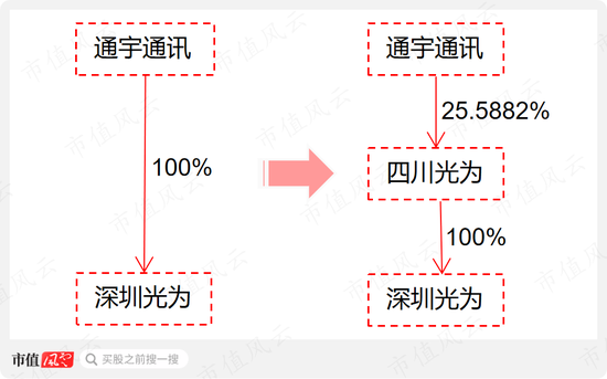 具體轉讓做法是:公司向四川光為轉讓100%深圳光為股權的同時,通過受讓和增資獲得四川光為25.5882%股權。結果就是公司間接持有深圳光為25%左右股權,深圳光為由全資子公司變成參股孫公司。