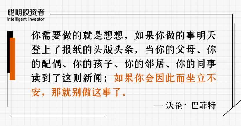 巴菲特會反反覆覆地提醒,「我們可以承受金錢上的損失、甚至是巨大的金錢損失,但我們無法承受哪怕只是一絲一毫的名譽上的損失。這一點始終都排在第一,無論過去多少年它都沒有改變也不會改變。」