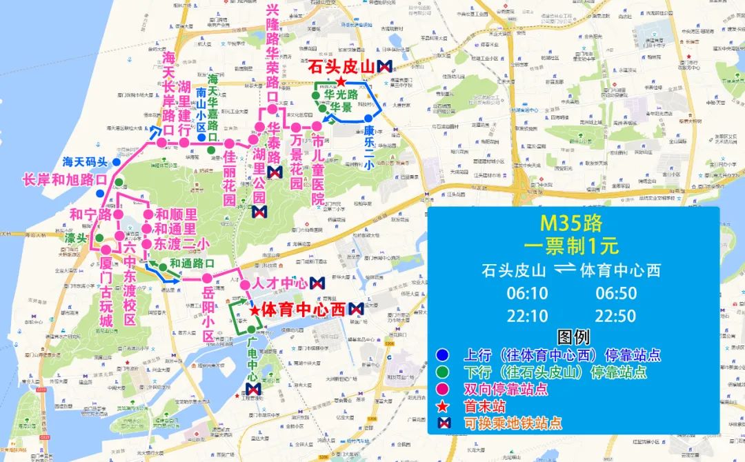 (二)新增M35路,方便宜賓路、海天路、和通片區乘客接駁地鐵湖里公園站、人才中心站、體育中心站