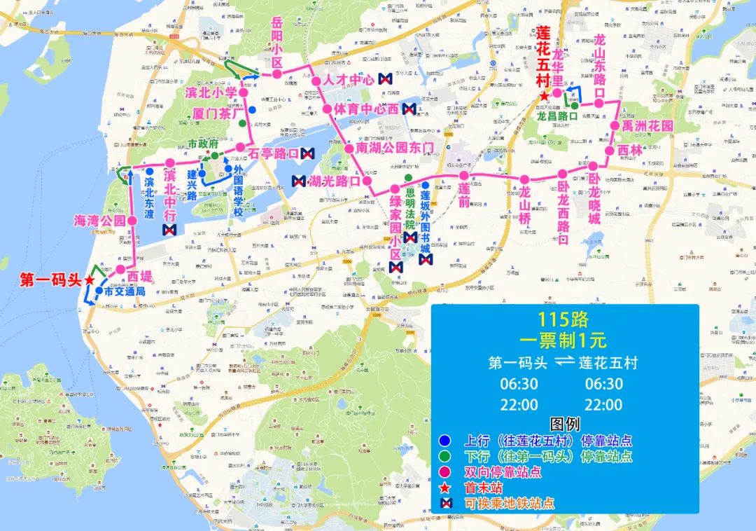 (二)115路改經湖濱東路、湖濱南路運行,方便原855路蓮阪、蓮前片區乘客往返人才中心、岳陽小區