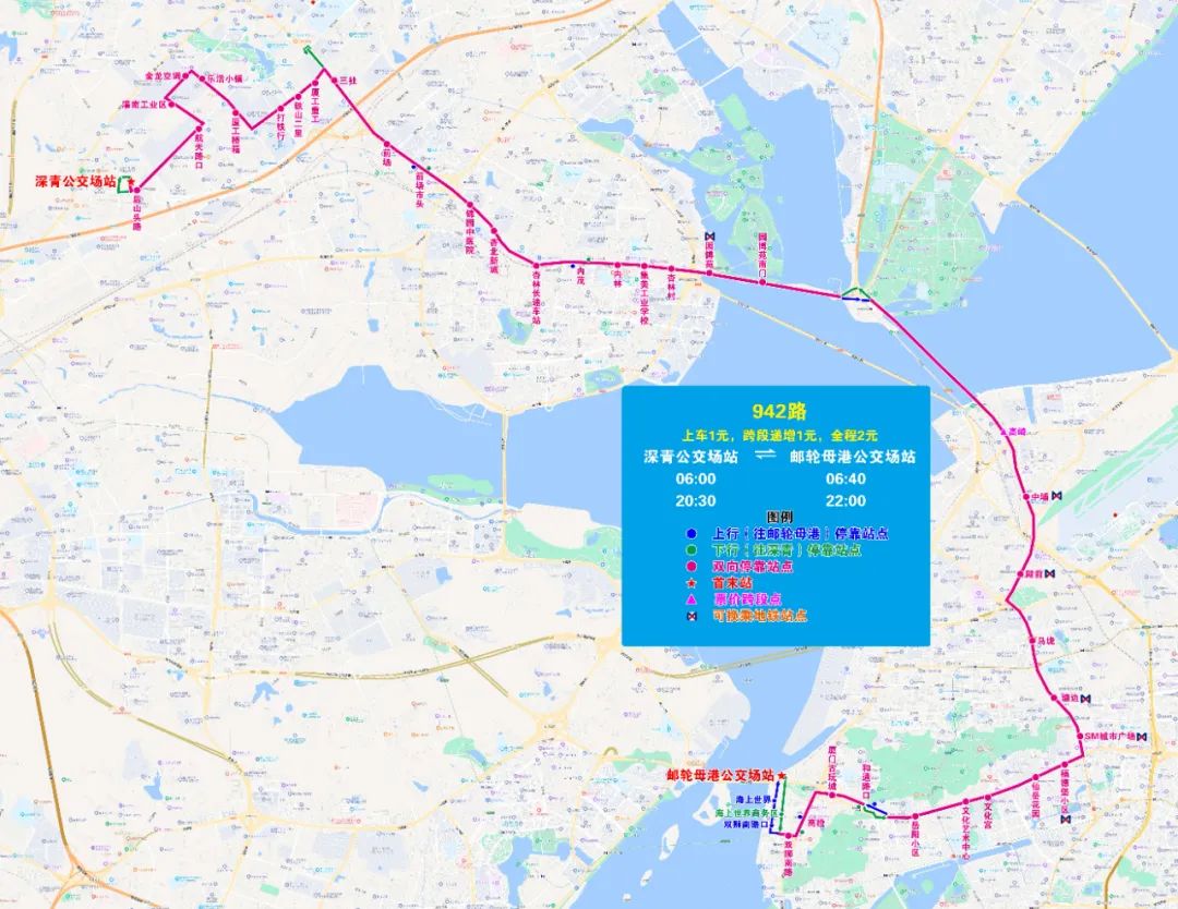 7.票價跨段點:翔安新城公交場站—國貿中心—五緣灣西公交場站。