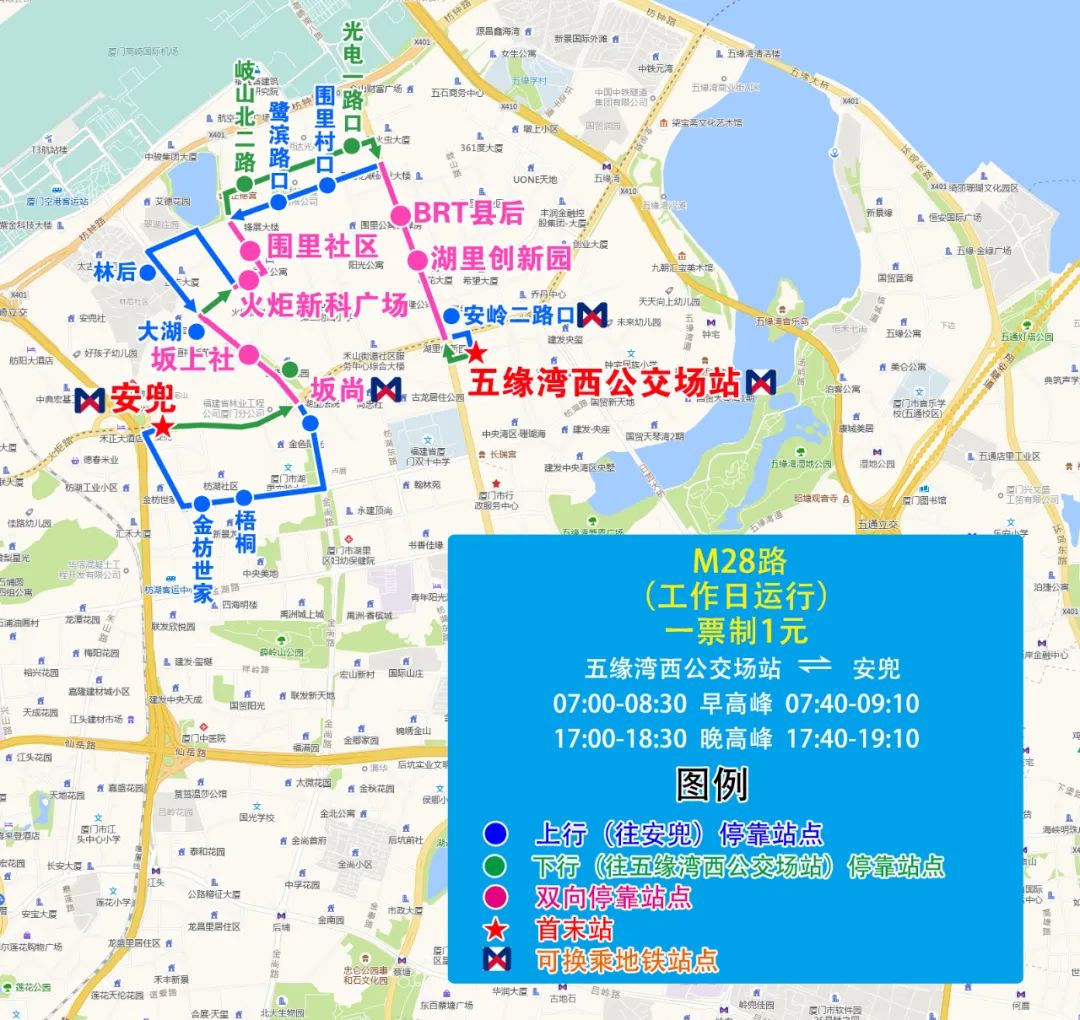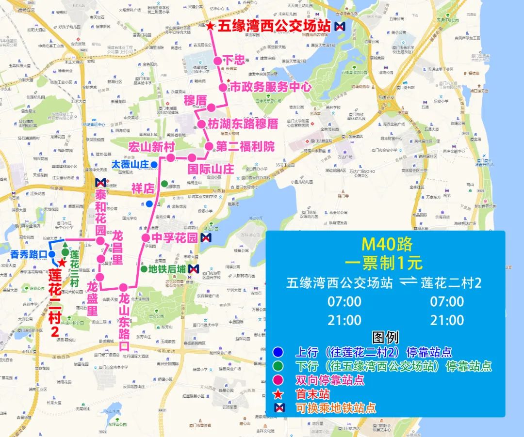 (七)新增M40路,方便穆厝、金山、祥店、誼愛路等片區乘客接駁地鐵湖里創新園站、后埔站、江頭站