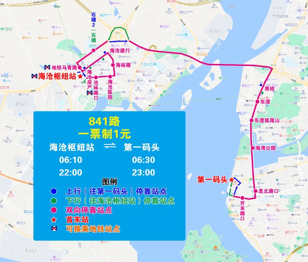 (二)841路調整為海滄樞紐站至第一碼頭,緩解輪渡、廈港片區的交通壓力