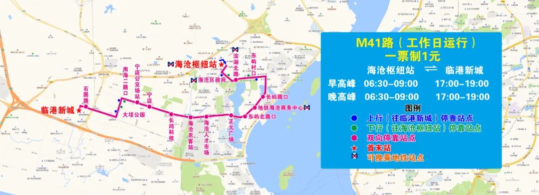 (八)新增M41路,方便東嶼、信息產業園、臨港新城片區乘客接駁地鐵馬青路站、海滄行政中心站、海滄商務中心站