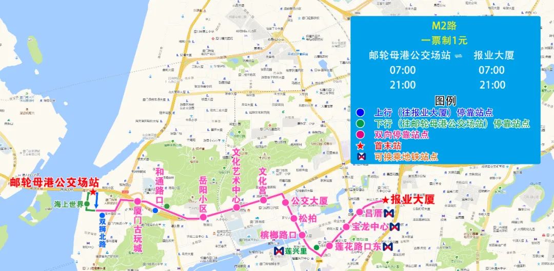 (三)M1路由第一碼頭改至郵輪母港公交場站始發,方便原841路廈港、輪渡片區乘客往返開禾路口、東渡等區域
