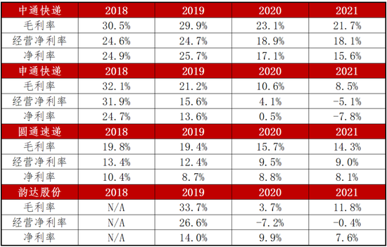 與同行一樣,中通的盈利能力從2018年到2021年均處於下降趨勢。然而,中通所經歷的淨利率下滑似乎不如同行那麼明顯。