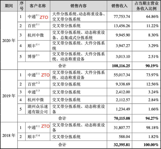 根據招股書,從2018年到2020年,中通一直是中科微至的最大客户。儘管中通為中科微至帶來的收入已從2018年的98.2%降至2020年的64.9%,但如今,中科微至對中通大客户的依賴性仍然十分明顯。