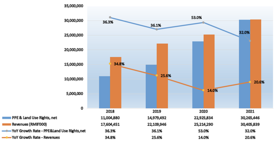 中通通過透支未來潛在的市場增長份額來超配實際的增長收入,從而試圖證明PP&E(耐用資產)和土地使用的合理性,但他們似乎在沒有戰略引導的情況下積累土地。