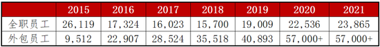 然而,中通透露,截至2021年12月31日,其外包人員超過57,000人。下表總結了中通在全職和外包的員工人數。