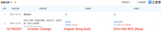 根據股東變更記錄,河南中通快遞的前股東宋競偉似乎是中通員工。2021年12月19日,宋競偉不再是河南中通快遞的股東,馬二輝成為持股95%的股東。宋競偉此前持有該公司30%的股權。