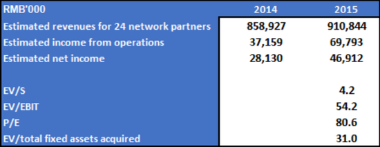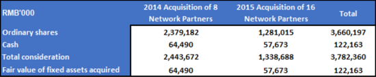 我們展示了中通如何利用2014年和2015年的收購去實現內部賬目的平衡。公司文件顯示,中通以極高的溢價從關聯方處收購了加盟商。