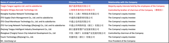 浙江通譽主要股東胡紅羣是中通的首席運營官。而浙江通譽的法定代表人賴建昌也是中通的關聯方。