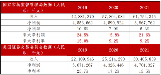 中國工商總局提交的文件顯示,2019年至2021年的淨利率從6.3%升至10.6%,而該公司在向SEC遞交的財務報表中相對應的利潤率為15.5%升至25.7%。