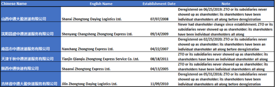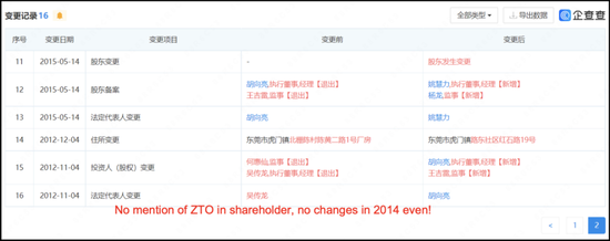 更令人擔憂的是,在中國的記錄中,交易后加盟商的所有權並沒有發生變化。正如我們所展示的,我們認為可能是這些實體已經作為中通的子公司在運作。中通股東的增資或許沒有購買任何實體。