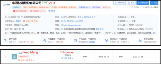 企查查顯示,成都西部由孟峰100%持股。孟峰是中通在中國VIE實體(可變利益實體)的1%所有者,據報道,孟峰也是中通首席執行官助理和中通冷鏈部門的首席執行官。
