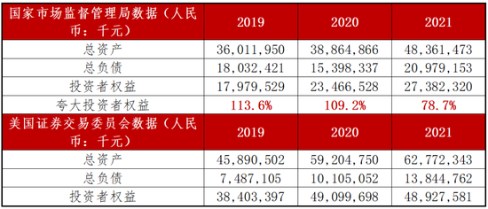 SEC和SAIC文件之間的股東權益數據差異在前幾年甚至更為誇張,中通在2019年和2020年分別誇大了113.6%和109.2%的股東權益。
