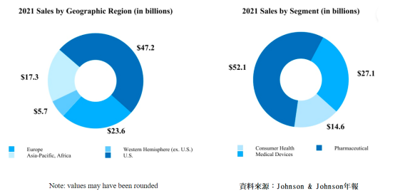 不少人都會以為強生業務是類似P&G(PG.US),主營個人護理產品,但實際上,集團是以製藥和醫療設備相關業務為主。