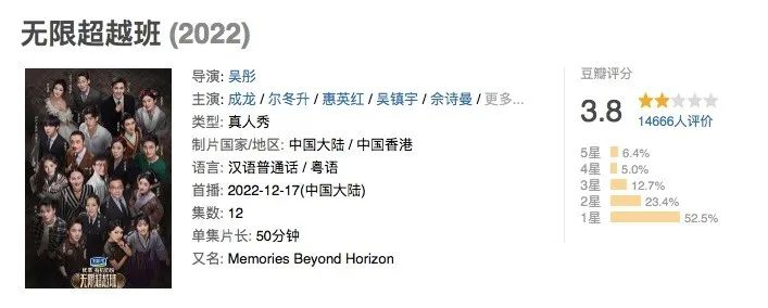 但這兩檔節目更為人所關注的,是它們的口碑問題:目前,節目的豆瓣評分分別為3.8和3.2,刷新了市場頭部綜藝的底線。熱度與口碑難以兼具,以一種極端的方式呈現。