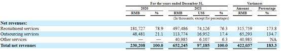 從業務結構來看,羅科仕的收入來自招聘服務,包括靈活就業招聘服務和長期就業招聘服務,外包服務,及其他服務,包括信息技術服務和培訓服務。目前,招聘服務是公司的頂樑柱,企業客户是公司迄今為止最重要的收入來源,這些有招聘、培訓、銷售線索生成和外包需求的公司,在2021年為其貢獻超過75%的淨收入。