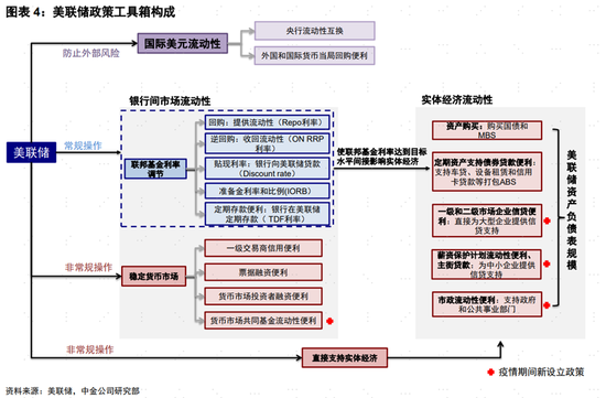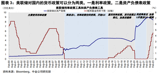 美聯儲本輪已經加息475bp,並於2022年6月開始縮表進程。1)加息:指調整聯邦基金利率(可以理解為美國銀行間拆借利率)目標區間,爲了使有效聯邦基金利率(銀行間隔夜拆借準備金真實發生的利率)符合這個目標區間,需要配合隔夜回購和逆回購等操作。聯邦基金利率的變動則會通過利率曲線傳導,從而調整流動性水平。2)縮表:指減小美聯儲資產負債表規模。加息主要影響的是一級交易商[3](一些合資格商業銀行等)流動性,而縮表涵蓋的對手方更廣(除了一級交易商外,還涉及其他金融機構、居民、企業甚至政府部門)。此外縮表除了減少銀行準備金外,也可能影響所持資產(例如長期美債)供需關係,從而直接的收緊金融條件。