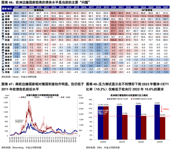 我們同樣也不認為歐債危機重演是基準情形,歐央行仍有能力避免債務壓力向金融體系的信用危機甚至流動性危機傳導,例如通過新的政策工具(anti-fragmentation tool)應對金融分化;必要時甚至可以重啟2012年的直接貨幣交易(OMT),允許其無限量購買某一國家主權債務,從而避免銀行間市場出現流動性危機。但由於經濟體量大,其風險需要關注。