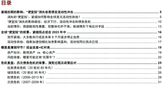 緊縮后期的影響路徑:「便宜錢」消失容易誘發流動性衝擊,但債務危機不是必然結果;流動性拐點或在2023年中