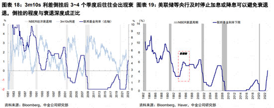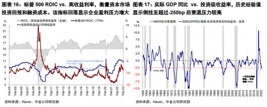 投資回報率與融資成本的收窄甚至倒掛大概率將引發衰退;衰退程度則與倒掛深度、是否有債務危機或者意外衝擊有關;而美聯儲等央行及時停止加息或降息可以避免衰退。典型例子如1994年,前瞻貨幣操作使得通脹被成功遏制后及時停止加息,利差並未倒掛、衰退也沒有發生。得益於此,美股在整個加息周期跌幅不深,標普500指數最大回撤8.9%,在加速加息階段橫盤震盪,最后一次加息前即重啟上行趨勢(《1994年快加息何以能避免衰退》)。