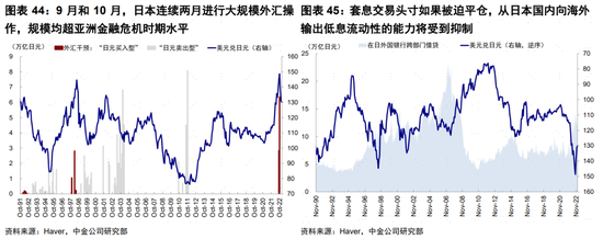 ►日本:日元和日債變化的意義主要在於通過「便宜錢」供給帶來連鎖反應。當前的日本則處於一個「脆弱」的平衡之中。日央行和財務省選擇通過寬松刺激經濟、並以外匯市場干預暫緩匯率過快貶值的勢頭,是在緊縮和貶值中兩害相權取其輕。但這條路能夠走通前提是經濟能夠得到有效提振且通脹維持相對温和態勢。否則,弱經濟>>政策寬松>匯率貶值壓力>>經濟下行壓力可能逐漸演變為一個負向循環,面臨外儲過快消耗打破當前平衡的風險,除非「被動等待」美聯儲放緩緊縮步伐。而避險情緒或者日債融資成本快速抬升都可能觸發一部分成本基於日元貶值和日債低息融資的投資者拋售所持資產(例如美債)、還回日元實現降低頭寸的目的(所謂套息交易的逆轉,carry trade),進而加大日元的需求,形成事實上的日元升值,這也是日元往往被視為避險匯率的原因之一。如果這一交易形成趨勢並自我強化實現,甚至不排除出現較大的市場擾動。短期來看,我們認為日本大概率不會激進調整貨幣政策,但需要關邊際變化,尤其需要關注新行長的政策取向。