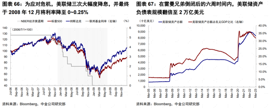 ►貨幣政策轉向:為應對危機,美聯儲三次大幅度降息,並最終於2008年12月將利率降至0~0.25%,同時下調貼現率至0.5%,並延長貼現期限。此外,美聯儲加強公開市場操作力度,除了收購國債以外,還通過推出新的資產支出商業票據、商業票據融資工具、貨幣市場投資者融資工具等非常規流動性管理工具向市場投放流動性。