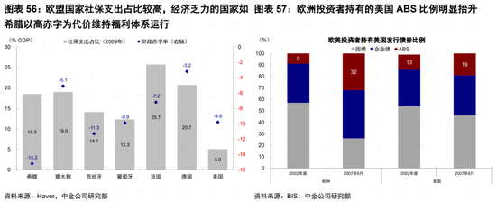 高福利保障體系下積累的高負債率是內因。歐盟國家擁有高福利的社會保障體系,高額的福利支出進一步加重了政府的財政負擔,經濟增長乏力的國家如希臘、愛爾蘭等則以高赤字為代價維持高福利體系的運行,為主權債務危機的爆發埋下了「種子」。