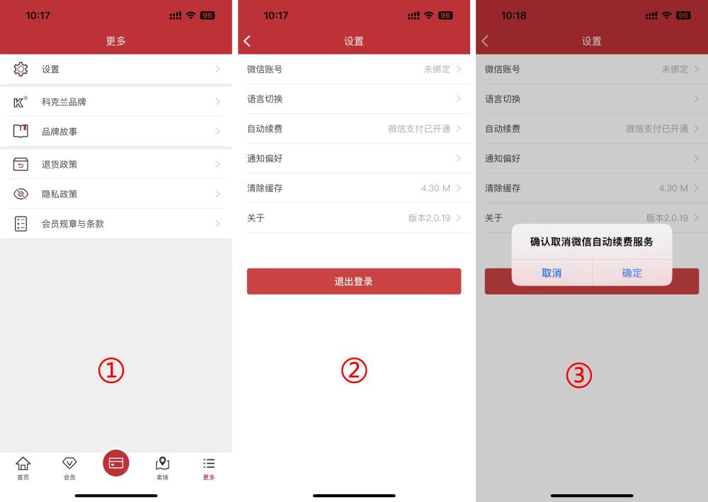 但記者在App中反覆嘗試,發現退訂渠道實則是有的:點擊App下方的「更多」按鈕進入「更多」頁面,再點擊上方的「設置」,即能進入App的設置頁面。仔細看設置頁面,在語言切換、微信號綁定、通知偏好、緩存清除等一堆一般人用不到的App功能設置入口中,竟藏着一個不倫不類的會員「自動續費」設置入口。點擊「自動續費」,App並沒有進入下一級設置頁面,而是直接彈窗,詢問是否「確認取消微信自動續費服務」。記者嘗試點擊確定后,發現自動續費已被取消。