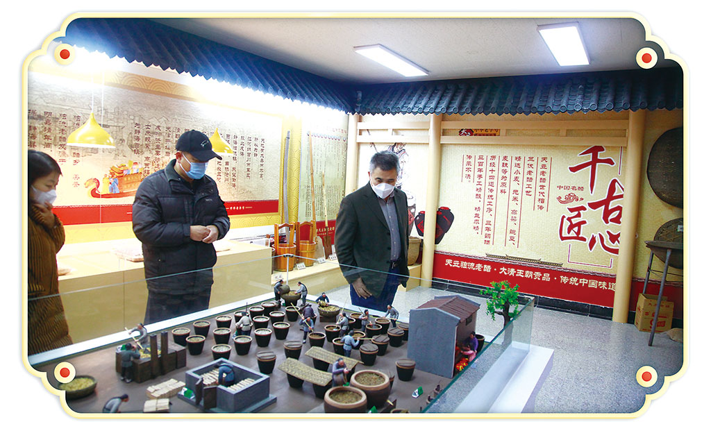 以沙盤製作形式還原古代「天立醬園」非物質文化遺產獨流老醋傳承工藝技藝、釀醋作坊、人文景觀、風物遺址,展現獨流老醋釀造技藝的歷史文化厚重底藴和食醋文化的博大精深。