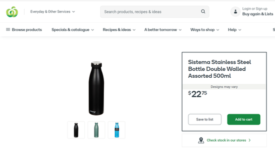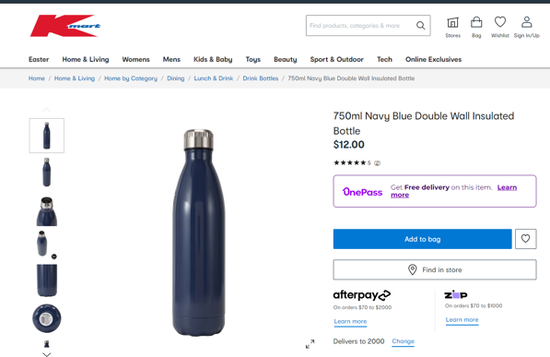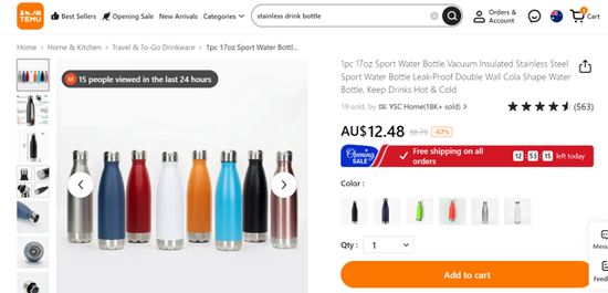 以澳洲大型商超同類產品對比,保溫杯在Woolworths、Coles和Kmart 的售價分別是22.75澳元、22.75澳元和12澳元,Temu的價格則是12.48澳元。(如下圖所示)