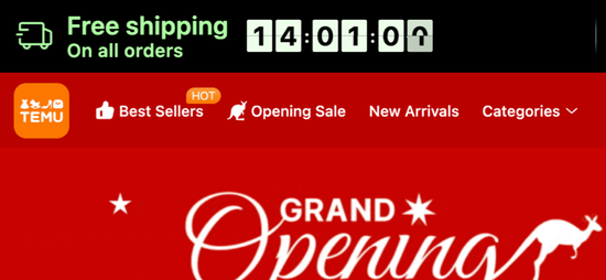 目前,Temu在澳新市場同樣主打了免費配送策略。但與上線之初,Temu在美國新用户前三單可以獲得30%的折扣,並獲得免費配送服務不同,澳新地區所有訂單均免運費的活動採用倒計時方式,每次打開網頁,截止時間都是當日零點,營銷套路滿滿。而享受滿減的標準,折扣也遠低於美國市場。