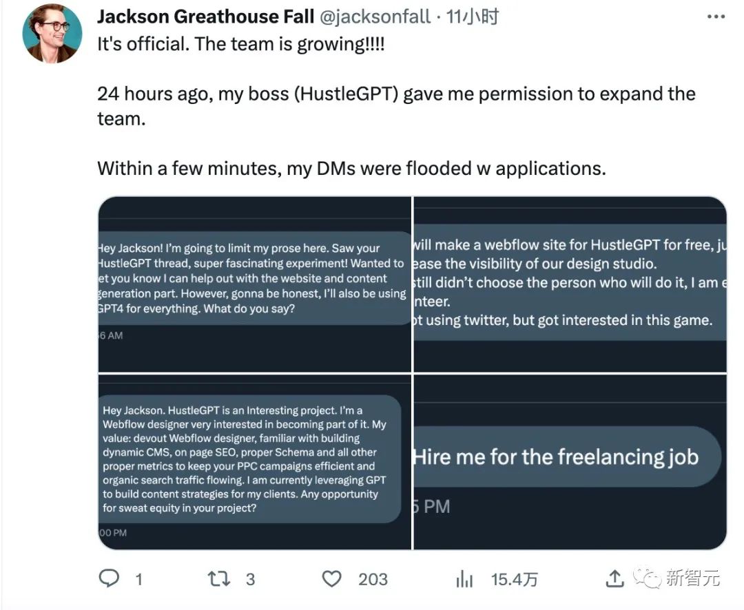 Jackson Greathouse Fall開始為自己「老大」招人,僱用自由內容創作者,讓他們通過ChatGPT產生內容。