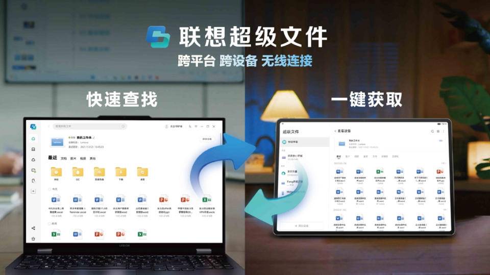 不僅如此,這次聯想天禧生態也為用户帶來了全面升級的聯想超級文件,支持在不同設備間快速查找文件,並一鍵調取,多屏接力提升產品間的協作體驗。用户在移動辦公場景下,可以通過Y900直接查找調取家中電腦設備的所有文件,輕松一鍵下載、創作;在平板端創作的文件,亦可以通過超級文件的調取,在電腦端繼續接力協作。這都是依託於超級文件跨平臺、跨設備、無線連接的強大智能技術,重構當下混合辦公多場景應用的多元使用需求,為用户提供更高能的使用體驗。
