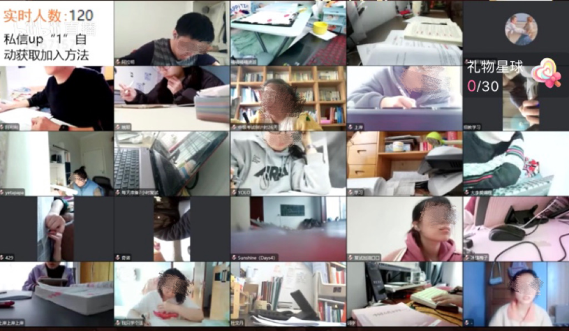 三月中旬,剛剛經歷了考研失利的應屆畢業生於迪決定再考一年。每天早上8時,他都會準時坐在家里的書桌前,把手機攝像頭斜對着自己支在書桌一角,進入一間線上會議室,開始一天的複習。於迪説,家里的學習氣氛不比學校的自習室,容易分神,開着攝像頭和其他人一起學習,有種監督作用。「就像有隻眼睛時刻盯着我,玩手機都覺得不好意思。」